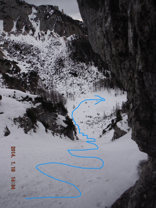 400km od Brna v lyžařské oblasti Wurzeralm u obce Spital a.Pyhrn se dají i přes málo sněhu v lednu najít pěkné podmínky na freeridovou tůru a skialp i při pozdním příjezdu. Protože nepadal sníh víc než měsíc a všude bylo bez sněhu,tak sem si nevzal pásy. Šel jsem tedy sám v lyžákách od stanice lanovky s lyžemi na zádech.